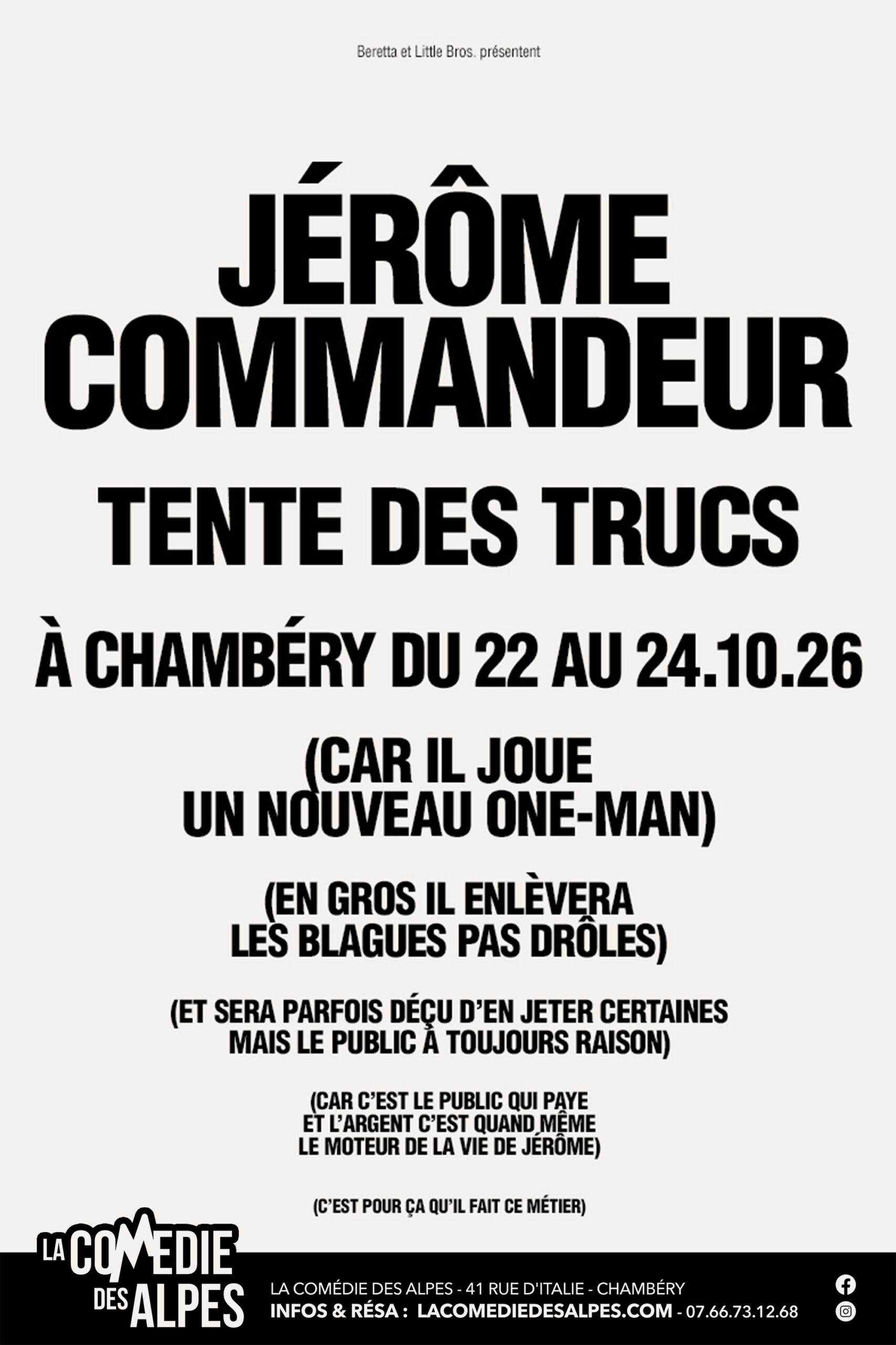 Entre éclats de rire et instants d’émotion, les soirées deviennent de véritables respirations hors du quotidien. Un écrin de fraicheur plein d’humour et de vie où l’on vient s’évader, s’émerveiller et surtout partager. Chaque semaine sans exception entre septembre et juin, du mercredi au samedi soir ainsi qu’un dimanche après-midi sur deux, La Comédie des Alpes est LE rendez-vous culturel incontournable pour tous les amateurs de comédie.